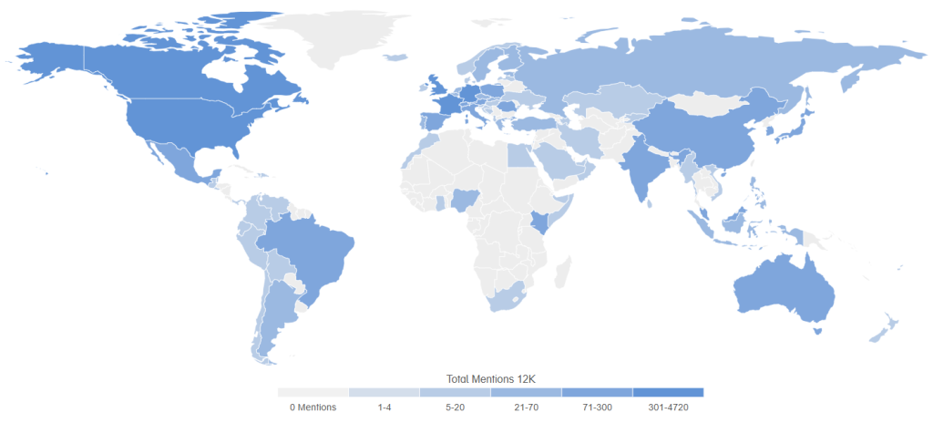 L’analisi geografica delle citazioni evidenzia una copertura realmente globale dell’evento. Europa e Nord America guidano il volume delle menzioni, ma cresce anche l’attenzione da parte di Asia e Sud America, a conferma della portata internazionale dei Giochi.
